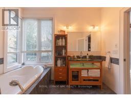 There is a calm that settles over 164A Lakeshore Road the moment you arrive, shaped by thoughtful architecture and a natural connection to the ravine below. Designed by Tom Arbek with Frank Lloyd Wright inspiration, the exterior carries a quiet elegance with a multi-level layout that follows the landscape with intention. That sense of ease extends outdoors through decks that reach toward the ravine and gather shifting light throughout the day, while the inground pool rests among trees and bamboo accents. Perennials add beauty with minimal upkeep, allowing the surroundings to feel effortless in every season. Inside, light moves across the tall windows from sunrise into evening, guiding you through spaces that feel both refined and welcoming. The foyer opens to the great room where height, warmth, and natural light anchor the home. The living area surrounds the fireplace and flows into the dining area and kitchen. Double built-in ovens, a glass cooktop, a bespoke smart fridge, a skylight, and a walk-out to the upper deck all contribute to a kitchen designed for gathering. The primary suite rests on this level with expansive windows, a walk-in closet, a 5-piece ensuite, and its own walk-out. A second bedroom, a 4-piece bath, and a well-planned laundry and pantry complete the main level. The lower level offers remarkable flexibility to support different lifestyles. The in-law suite includes tall ceilings, large windows, a family room with a fireplace, a kitchenette, and a bedroom with an ensuite. Another wing features a rec room, a full kitchen, two bedrooms, and a spa-inspired bath with a steam shower, rain shower, and body jets. Both areas have separate entrances, creating opportunities for privacy, multigenerational living, dedicated guest quarters, or a home business. This is a home shaped by light, privacy, and natural beauty. It invites you to slow down, find inspiration in the landscape, and experience a way of living that feels both elevated and deeply grounded. (id:61594)
