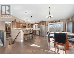 Welcome to this wonderful executive style bungalow in Montague Estates that neither lacks in space or high-end finishes. Just minutes outside the growing town of Smiths Falls you have that touch of country that so many desire in an established neighbourhood with executive style homes. A perfect place to raise a family or enjoy the home of your dreams. As you enter, the home greets with a grand open concept living/dining & kitchen. The living room has vaulted ceilings that lead into the dining area & kitchen as well. The dining area provides access via patio doors to the covered back deck with pot lighting. The back deck where you can enjoy morning coffee in the privacy of your backyard with no rear neighbours. Back inside the gorgeous kitchen offers plenty of storage, ss appliances & a convenient breakfast bar. Beautiful vinyl plank flooring runs through out most of the main floor. Down the hall is the main floor laundry, 2nd full bath, generous sized 2nd bedroom, mud room area with garage access and finally the spacious master suite with walk-in closet & 4 pc ensuite & linen closet. The L/L is home to an oversized family room with cozy wood pellet stove, expansive 3rd bedroom & 2pc bath. Potential for a 4th bedroom. There is also a large utility/storage room as well as walk-out to the garage. The 30' x 28' garage gives you plenty of space for vehicles as well as room for extra toys or storage. Make this your new home you won't be disappointed! (id:61594)