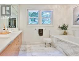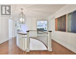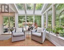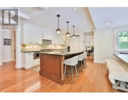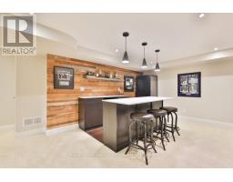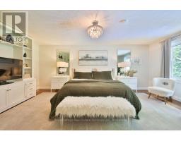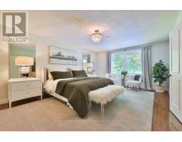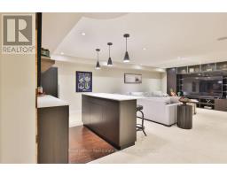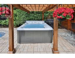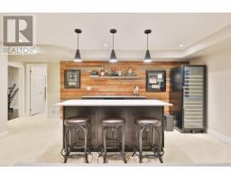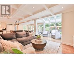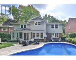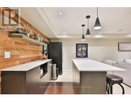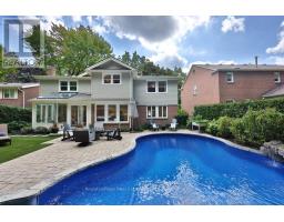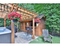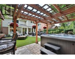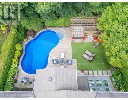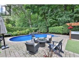Stunning, fully renovated family home in desirable South East Oakville neighbourhood, backing onto serene greenspace & parkland. Thoughtfully updated throughout with high-end custom finishes, this south-facing property offers over 4,400 sq ft of beautifully finished living space, including 4+1 bedrooms & 3.5 baths. The spacious living & dining rooms feature oversized windows that flood the space with natural light. An impressive open-concept layout connects the family room, sunroom & gourmet kitchen, complete with a large island & breakfast area overlooking the private backyard with a saltwater pool. The expanded primary suite includes a luxurious 5-pc ensuite & generous walk-in closet. Three additional bedrooms offer ample closet space and are served by a stylish 3-pc main bath. The lower level is designed for entertaining & relaxation, with a large rec room, custom bar, built-in shelving, fireplace, games area, dedicated exercise room with cork flooring, 3-pc bath & abundant storage. Private backyard retreat complete with a saltwater pool, hot Sundance Hamilton Hot Tub, waterfall, pergola & lush perennial gardens. Relax in the hot tub and poolside bar with built-in shelving, fridge & TV. The addition of synthetic grass ensures a low-maintenance green space you can enjoy year-round. Recent updates include "Magic Windows" patio door & rear windows (2021), pool liner (2024), Saltwater chlorinator (2023), Sundance "Hamilton" Hot Tub (2021), pool bar with built-in shelving, fridge & TV (2021), synthetic grass in backyard (2021), Interior doors & hardware on main level (2021), professional spray painting of kitchen cabinets & fireplace surround (2021). Additional highlights include neutral décor, hardwood flooring, heated floors, coffered ceilings, custom built-ins, an abundance of storage & much more! Located on a quiet street in a top-rated school district with easy access to major highways & GO train - truly a perfect blend of luxury, comfort & convenience. (id:61594)