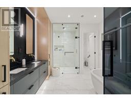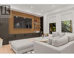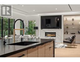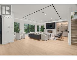 Newly built modern residence in the heart of South Leaside offering nearly 6,500 sq.ft. of living space! Exceptional designer-curated finishes and smart home technology throughout. Designed for the modern family and built to impress, this magazine-worthy residence perfectly blends luxury, functionality, and versatility. Oversized principal rooms, two private home offices, and a full legal in-law suite with income potential make it ideal for multigenerational living or a flexible live-work lifestyle.Showcasing engineered white oak floors, soaring ceilings, and expansive windows with motorized blinds, every detail reflects thoughtful design and quality craftsmanship. The custom kitchen is a true centerpiece - featuring a panelled fridge, trash compactor, waterfall island with hidden storage, and full-height cabinetry - flowing seamlessly into the family room with a marble gas fireplace and walkout to the backyard. Step lighting, integrated speakers, and sleek modern finishes complete the main level's sophisticated aesthetic.Upstairs, four oversized bedrooms include a magazine-worthy primary suite with a slatted wood feature wall access to His & Hers WICs, cove-lit ceiling, fireplace in stone surround, fully equipped bar, walkout to a private balcony (hot tub-ready), and a spa-inspired ensuite with steam shower, freestanding tub, heated floors, and double vanities. Secondary bedrooms are equally impressive, and a dedicated laundry room with dual washer/dryers enhances everyday ease. Upstairs office may be converted to a 5th bedroom.The lower level extends the living experience with a gym, sauna, recreation lounge, and wet bar equipped with a dishwasher and bar fridge - plus a soundproofed legal in-law suite with its own entrance, kitchen, 3-piece bath & laundry.Located in the coveted Bessborough/Rolph school district, this home delivers a rare combination of sophistication, functionality, and future income potential in one of Toronto's most sought-after neighbourhoods. (id:61594)