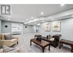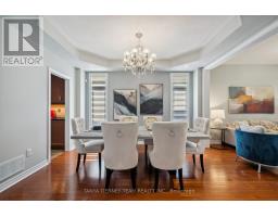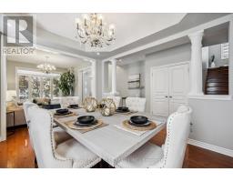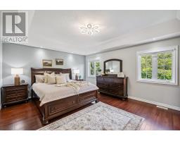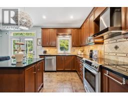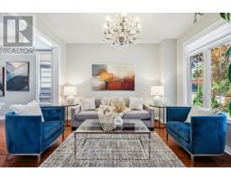 Prestigious executive home on a premium treed ravine lot, offering unparalleled privacy and resort-style living. This luxurious 4+1 bedroom home showcases manicured perennial gardens, gated access on both sides, and a serene wooded pond - your own private sanctuary! Step inside to a grand cathedral-ceiling foyer and an elegant open-concept main floor appointed with rich hardwood, pot lights, wrought-iron staircase, and 9 ft ceilings. Entertain in the sophisticated formal living and dining rooms with coffered ceiling, or relax in the refined family room featuring a custom gas fireplace. The gourmet chef's kitchen impresses with quartz counters, ceramic backsplash, centre island with breakfast bar, pantry, and dedicated servery with walk-out to the tranquil backyard oasis. Main floor laundry offers granite counters, sink and garage access. The upper level boasts four generous bedrooms - each with it's own ensuite. The lavish primary retreat offers coffered ceiling, his & hers walk-in closets with organizers, and a spa-inspired 5-pc ensuite with a deep soaker tub. The fully finished lower level provides exceptional versatility showcasing a bright in-law suite complete with above-grade windows, full kitchen, large rec room with built-ins and surround-sound wiring, 5th bedroom, dining area and 3-pc bath. Nestled steps from top schools, parks, trails, major retailers, and highway access - this is luxury living at it's finest! (id:61594)