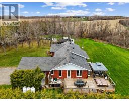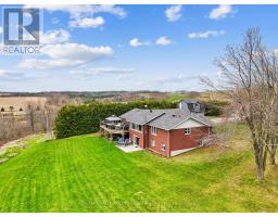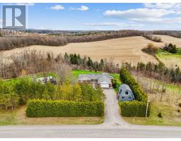 Nestled on a tranquil, tree-lined 5-acre property with sweeping views of Northumberland County's rolling hills, this beautifully designed home offers exceptional versatility. The lower level offers a three-bedroom plus office complete in-law suite with a separate walkout. A detached coach house adds even more functionality, with a versatile loft perfect for a guest suite, studio, or home business. On the main level, the bright and airy living room showcases a striking wall of windows, vaulted wood-clad ceiling, exposed brick accent wall, and soft accent lighting. The open-concept dining area connects seamlessly to the kitchen, making it ideal for family gatherings and entertaining. Contemporary lighting highlights the generous space, with a walkout extending the living area to the outdoors for al fresco dining. The kitchen features ample cabinetry, built-in stainless steel appliances, and a peninsula with pendant lighting that overlooks the dining area perfect for everyday use and special occasions. The sun-filled primary bedroom boasts a walk-in closet. Two additional bedrooms, two bathrooms, and convenient main-floor laundry complete the layout. On the lower level, the in-law suite includes an open living and dining area with a walkout, full kitchen, three bedrooms, office, bathroom, and private laundry ideal for multi-generational living or extended stays. The coach house loft offers a peaceful, flexible space for guests or creative pursuits, set apart from the main residence for added privacy. Outdoors, the expansive deck invites quiet mornings with coffee and hummingbirds, while designated lounging, dining, and hot tub areas create a true retreat. A lower patio off the basement walkout and landscaped gardens enhance the natural setting. Ideally located close to the renowned Ste Anne's Spa, this home offers a rare opportunity to enjoy the serenity of the countryside with all the conveniences of modern living. (id:61594)