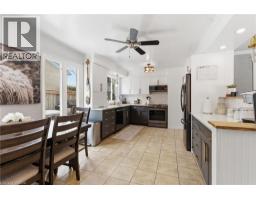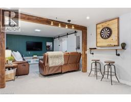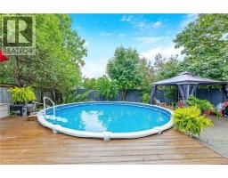 The perfect place to create lasting family memories. This spacious 4+1 bedroom, two-storey home sits on a large corner lot in the highly sought-after Lakeview neighbourhood, just a short stroll from Fairy Lake, local schools, parks, and scenic walking trails. The property offers fantastic curb appeal with a large front lawn, mature trees, and beautifully maintained gardens. A welcoming front porch provides the perfect place to relax while watching the kids play, while the extended driveway offers parking for up to six vehicles. Inside, the main floor is warm and inviting. A bright family room featuring a large bay window flows into the renovated eat-in kitchen, thoughtfully designed with soft-close cabinetry, quartz countertops, black stainless steel appliances, and built-in wall cabinetry with pantry storage. An electric fireplace adds a cozy touch and creates the perfect setting for everyday living and family dinners. The main floor also includes a powder room, convenient garage access, and a walkout to the fully fenced backyard. The backyard is designed for entertaining and relaxation, complete with an above-ground pool, pool cabana, sauna, and a stamped concrete patio that creates your own private outdoor retreat. Upstairs, you will find four spacious bedrooms, including a bright primary bedroom with large windows and double closets. A four-piece bathroom with double sinks makes busy mornings easier for the whole family. A convenient laundry chute connects directly to the basement laundry area for added functionality. The fully finished basement adds even more living space with a fifth bedroom featuring large barn doors, along with a recreation room complete with a dry bar, perfect for movie nights, games, or hosting guests. Located just a short drive from Highway 401, this home offers an ideal balance of peaceful neighbourhood living and easy commuting. (id:61594)