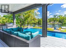 STRIKING ARCHITECTURE, WATERFRONT SERENITY, & ENDLESS LUXURY - A CONTEMPORARY MUSKOKA HAVEN WITH OVER 2,800 SQ FT OF STYLE! Welcome to a waterfront retreat with 50 feet of direct shoreline on the Trent Severn Waterway, where every day feels like a Muskoka getaway. Surrounded by lush forests, lakes, hiking trails, and golf courses, this location offers year-round adventure, with the Lauderdale Point Marina and Resort just steps away for waterside dining and boating convenience. Only 15 minutes to Washago and 25 minutes to Gravenhurst, the property balances peaceful seclusion with easy access to daily essentials. Striking curb appeal is showcased by bold modern architecture with rare imported stone, while the driveway and attached double garage provide parking for 10+ vehicles and toys. The private, fully fenced backyard has been transformed into a luxury resort with a heated pool, bubbling hot tub, outdoor TV, firepit lounge, and an outdoor kitchen, all overlooking a private dock with a jet ski ramp and the charming Zebra Bar, a beloved landmark amongst the welcoming neighbours. Inside, 2,800+ sq ft of stunning living space offers open-concept flow, with a living area centred around a fireplace and a walkout to the deck, and a designer kitchen with an oversized island, professional gas stove, and custom lighting. The main level also features a versatile bedroom or office, a powder room, and a mudroom with garage entry. Upstairs, three bedrooms and a laundry room are enhanced by a flexible rec space, while the primary suite delivers a spa-like escape with panoramic lake views, a walk-in closet, and a 5-piece ensuite with a deep soaker tub and walk-in glass shower. Thoughtful upgrades, including dual 200-amp services, a Generac transfer switch, on-demand hot water, and a UV water treatment system ensure peace of mind for years to come. This is more than a #HomeToStay - its a Muskoka waterfront lifestyle of luxury, leisure, and unforgettable memories! (id:61594)