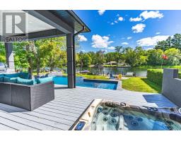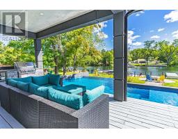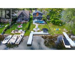 STRIKING ARCHITECTURE, WATERFRONT SERENITY, & ENDLESS LUXURY - A CONTEMPORARY MUSKOKA HAVEN WITH OVER 2,800 SQ FT OF STYLE! Welcome to a waterfront retreat with 50 feet of direct shoreline on the Trent Severn Waterway, where every day feels like a Muskoka getaway. Surrounded by lush forests, lakes, hiking trails, and golf courses, this location offers year-round adventure, with the Lauderdale Point Marina and Resort just steps away for waterside dining and boating convenience. Only 15 minutes to Washago and 25 minutes to Gravenhurst, the property balances peaceful seclusion with easy access to daily essentials. Striking curb appeal is showcased by bold modern architecture with rare imported stone, while the driveway and attached double garage provide parking for 10+ vehicles and toys. The private, fully fenced backyard has been transformed into a luxury resort with a heated pool, bubbling hot tub, outdoor TV, firepit lounge, and an outdoor kitchen, all overlooking a private dock with a jet ski ramp and the charming "Zebra Bar," a beloved landmark amongst the welcoming neighbours. Inside, 2,800+ sq ft of stunning living space offers open-concept flow, with a living area centred around a fireplace and a walkout to the deck, and a designer kitchen with an oversized island, professional gas stove, and custom lighting. The main level also features a versatile bedroom or office, a powder room, and a mudroom with garage entry. Upstairs, three bedrooms and a laundry room are enhanced by a flexible rec space, while the primary suite delivers a spa-like escape with panoramic lake views, a walk-in closet, and a 5-piece ensuite with a deep soaker tub and walk-in glass shower. Thoughtful upgrades, including dual 200-amp services, a Generac transfer switch, on-demand hot water, and a UV water treatment system ensure peace of mind for years to come. This is more than a #HomeToStay - it's a Muskoka waterfront lifestyle of luxury, leisure, and unforgettable memories! (id:61594)