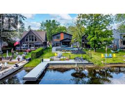 STRIKING ARCHITECTURE, WATERFRONT SERENITY, & ENDLESS LUXURY - A CONTEMPORARY MUSKOKA HAVEN WITH OVER 2,800 SQ FT OF STYLE! Welcome to a waterfront retreat with 50 feet of direct shoreline on the Trent Severn Waterway, where every day feels like a Muskoka getaway. Surrounded by lush forests, lakes, hiking trails, and golf courses, this location offers year-round adventure, with the Lauderdale Point Marina and Resort just steps away for waterside dining and boating convenience. Only 15 minutes to Washago and 25 minutes to Gravenhurst, the property balances peaceful seclusion with easy access to daily essentials. Striking curb appeal is showcased by bold modern architecture with rare imported stone, while the driveway and attached double garage provide parking for 10+ vehicles and toys. The private, fully fenced backyard has been transformed into a luxury resort with a heated pool, bubbling hot tub, outdoor TV, firepit lounge, and an outdoor kitchen, all overlooking a private dock with a jet ski ramp and the charming "Zebra Bar," a beloved landmark amongst the welcoming neighbours. Inside, 2,800+ sq ft of stunning living space offers open-concept flow, with a living area centred around a fireplace and a walkout to the deck, and a designer kitchen with an oversized island, professional gas stove, and custom lighting. The main level also features a versatile bedroom or office, a powder room, and a mudroom with garage entry. Upstairs, three bedrooms and a laundry room are enhanced by a flexible rec space, while the primary suite delivers a spa-like escape with panoramic lake views, a walk-in closet, and a 5-piece ensuite with a deep soaker tub and walk-in glass shower. Thoughtful upgrades, including dual 200-amp services, a Generac transfer switch, on-demand hot water, and a UV water treatment system ensure peace of mind for years to come. This is more than a #HomeToStay - it's a Muskoka waterfront lifestyle of luxury, leisure, and unforgettable memories! (id:61594)