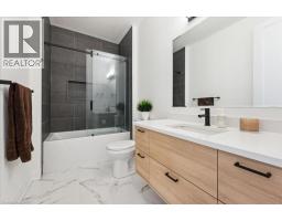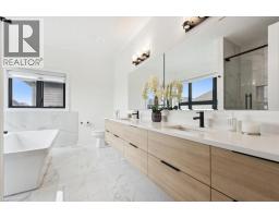 This delightful, ready to move in, less than 2 years old, huge Net Zero Ready Single Detached Home boasts a thoughtfully custom designed living space located in the premium NEW HARVIST community in Doon South Kitchener. The ground floor features a welcoming foyer with a covered porch entry. The open-concept layout includes a great room, with a beautiful upgraded kitchen and dining room with a laundry room and powder room on the same level around the corner. All floors, including the basement, offer ceilings that are 9 feet high and the home offers four bedrooms and family room upstairs, including a principal bedroom suite with a walk-in closet and luxury ensuite bathroom. A bonus feature is the family room, perfect for additional living space, might be 5th bedroom . Plus the spacious custom finished basement includes a three-piece bathroom, bedroom, open living/flex room area with the option to convert flex space into kitchen and convert it into an in-law secondary suite complete with a kitchen and bedroom. Come and see this beautiful modern house with over $250,000 spent on expensive upgrades, just to mention a few: all brick and stone, 9 feet ceiling all levels, all inside doors 8 , black design windows and front doors, huge gas stove with pot tap, custom made kitchen with cabinets up to ceiling, quartz countertops with waterfall island, zebra blinds, pot lights, garage with remote opener and electrical car charger, no any rentals. upgraded wide plank floors, black staircase and glass railing. Over $280,000 spent on customised upgrades. Come and visit us at open houses or arrange private showings.. (id:61594)
