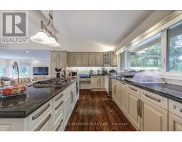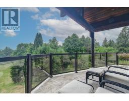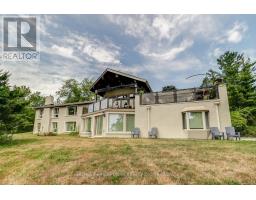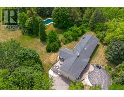 A Rare Caledon Estate. Welcome to this beautiful executive bungalow, privately nestled atop 25+ rolling acres in coveted Caledon. The main residence features a bright, open-concept layout with expansive living spaces, a family-style kitchen, and stunning countryside views. The spacious primary suite includes a luxe 4-piece ensuite, complemented by two additional bedrooms. A fully finished lower level adds a large family room with fireplace and wet bar, gym, office, and extra bedroom. The property offers a built-in 2-car garage, a separate detached 2-car garage, and plenty of additional parking. A second private drive leads to a renovated modern guest house with two self-contained apartments (2-bed & 3-bed) and a detached 3-car garage ideal for extended family, rental income, or multigenerational living. Equestrians will love the large horse arena, while outdoor amenities include a saltwater pool, tennis court, and lush landscaped grounds. Set on a gentle hilltop, enjoy panoramic views of the valley, paddocks, and beyond.A truly one-of-a-kind opportunity offering luxury, privacy, and endless potential. (id:61594)