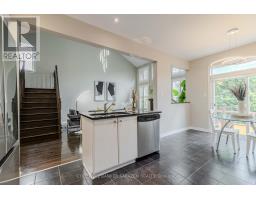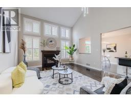 Prime location directly facing a park! Stunning full brick façade with a charming front porch. The main floor boasts a spacious open-concept design, featuring a soaring two-storey living room with a dramatic wall of windows adorned with California shutters with spacious den. The transitional-style kitchen includes sleek black granite countertops and a contemporary tile backsplash. Adjacent eat-in area leads to a generous 24x16 ft deck with sunny western exposure perfect for evening gatherings. Elegant hardwood staircase leads to the upper level. The expansive primary bedroom features vaulted ceilings. The fully finished lower level offers a full bathroom, 4th bedroom, and a comfortable family/rec room. (id:61594)