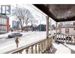 This charming c. 1900 brick beauty has been lovingly maintained by the same family for over 80 years - only the 2nd ownership of this remarkable property. The home boasts beautiful hardwood floors, original baseboards, doors, and trim, large windows and classic layout. The main floor features a welcoming family-sized foyer, spacious living and dining rooms, an eat-in kitchen, a full bath, and a rear mudroom. Upstairs, the second floor offers a large primary bedroom, a second bedroom, a full bath, and a kitchen with a separate entrance—ideal for multi-generational living. The third floor includes a family room and an additional bedroom. A surprisingly tall unfinished basement provides ample space for laundry, storage, cold storage and terrific potential. Additional highlights include a detached garage/outbuilding with power, perfect for a workshop or studio, a private side drive, a deck, and a covered front porch. Situated just steps from James Street North, Hamilton Farmer's Market, and West Harbour GO, this location is unbeatable. A fantastic opportunity and definite keeper for those looking to make a magnificent property home. (id:61594)