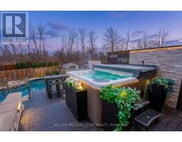Welcome to 168 Echovalley Drive, an exceptional family home backing onto a beautiful greenspace with a true backyard oasis. Located in a sought-after, family-friendly neighbourhood on the Stoney Creek Mountain, this upgraded home offers over 3,000 sq. ft. of total living space, blending comfort, style, and outdoor living. Perfect for active families, you're minutes from scenic trails, waterfalls, and quick access to the Red Hill Parkway. Enjoy nearby shops, schools, and a walk/bike path leading directly to Heritage Green Sports Park with sports fields, playgrounds, and a dog park right behind your home. Set on a premium oversized pie-shaped lot, the professionally landscaped backyard is designed for entertaining and relaxation. Features include a custom inground saltwater pool with water feature, multiple patio areas, and an elevated deck with glass railings and a hot tub, ideal for summer gatherings and quiet evenings. Inside, the main floor offers vaulted ceilings, a custom fireplace, and large windows overlooking the backyard. A formal dining room flows into the upgraded kitchen with custom cabinetry, stainless steel appliances, a functional island, and ample storage, enhanced beyond the builder's plan. Convenient backyard access allows for seamless indoor-outdoor living. Upstairs, the spacious primary suite features large windows, a walk-in closet, and a luxurious ensuite. Two additional bedrooms, a 4-piece bath, second-floor laundry, and a versatile office or lounge complete the level. The fully finished lower level includes a large recreation room and ample storage, ideal for family use or a home gym. This home offers an exceptional combination of upgraded living, outdoor space, and a prime location. For added convenience, the home can be purchased fully furnished, making for an effortless, move-in-ready experience (id:61594)