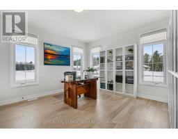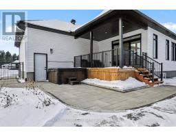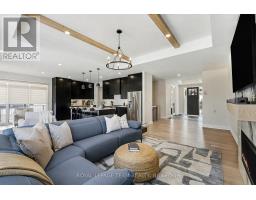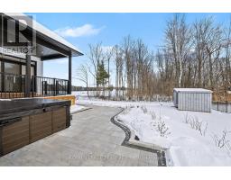 The Sussex in Silver Creek offers a private retreat on 3/4 acre in the peaceful community of Hallville. This turnkey, EnergyStar-certified home by ParkView Homes blends timeless style with modern function in a serene everyday setting. A paved laneway leads to a landscaped front yard with raised gardens and in-ground accent lighting. Inside, the open-concept design features tray ceilings, wide-plank engineered hardwood, and a striking gas fireplace anchoring the living room. The chef-inspired kitchen includes quartz counters, stylish backsplash, stainless steel appliances, large sink, ample storage, and an oversized island perfect for entertaining. A covered porch off the dining area extends living out doors. A mudroom with garage access and adjacent laundry adds efficiency, while a dedicated office or flex space suits work, study, or hobbies. The primary suite is a true retreat with a spa-like five-piece ensuite featuring a freestanding soaker tub, glass-enclosed shower, and a spacious walk-in closet. Two additional generous bedrooms share a nearby three-piece bath. The lower level offers hardwood flooring and a professionally installed 20' x 12' gym flooring area. Automatic Hunter Douglas blinds, a Generac backup system, and a water treatment system enhance comfort and peace of mind. Outside, the private backyard is designed for relaxation, featuring a large hot tub with lounger, lush greenery, apple, pear, and evergreen trees, perennial gardens, and rose bushes. Elegant wrought-iron fencing on three sides with chain-link along the tree line adds privacy. A professionally designed Amish-style shed with lean-to provides ample storage, complementing the attached two-car garage. Custom Gemstone permanent decorative lighting highlights the exterior, offering beauty and year-round curb appeal. This exceptional property delivers refined living, thoughtful design, and a tranquil country setting - truly a place to call home. (id:61594)