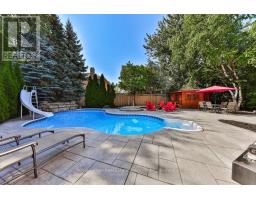 Nestled on one of Joshua Creek's most sought-after streets, this charming family home boasts 3,720 sq ft of elegant living space on a premium, mature pie-shaped lot adjacent to serene greenspace. The backyard is a private oasis featuring a luxurious spa-like ambiance with an inground pool, hot tub, expansive terrace and a charming cedar pool hut. Inside, you'll find a spacious great room, a main floor office and soaring vaulted ceilings. Recent updates include new stainless-steel appliances, a custom front door (2021), roof (2013), windows (2011), furnace (2017), garage doors (2022), pool pump (2025), pool heater (2025 demo model), pool liner (2018) and driveway (2021). Additional highlights include 9-foot ceilings on the main floor, hardwood flooring and two inviting fireplaces. Ideally situated near top-rated schools, parks, walking trails and transit. This is a must-see! (id:61594)