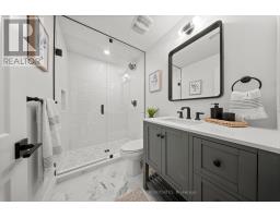 Welcome to this one-of-a-kind, renovated custom home in the heart of Port Dalhousie, offering over 3,500 sqft of beautifully finished living space and just a 10-minute walk to the beach, waterfront trails, and some of St. Catharines best restaurants. Every inch of this home has been thoughtfully designed with high-end finishes and a modern contemporary aesthetic. Inside, you're greeted by wide plank oak hardwood floors and a stunning chefs kitchen featuring custom cabinetry, panel-ready appliances, farmhouse sink, and an oversized island with seating for four. Smart drawer systems are built in for spices, utensils, cutting boards & more - perfect for both everyday use and entertaining. The main floor offers a mudroom with garage access, a bright living room with arched built-ins, gas fireplace, and a dining area with custom cabinetry and walkout to a spacious covered back deck, ideal for hosting or relaxing outdoors. Upstairs, the primary suite is a serene retreat with dual walk-in closets, a cozy reading bench, and a spa-inspired 5-piece ensuite with soaker tub, walk-in shower, heated floors and double vanity. Three additional bedrooms provide great natural light and large closets, complemented by a second full bath with a 72" double vanity, heated floors, and built-in shelving. The impressive 2nd floor laundry includes quartz counters and ample storage. The finished basement offers a full kitchen, bath, and separate entrance ideal as an in-law suite, guests or potential income opportunity. Outside, enjoy two large decks, a spacious garage, and parking for up to 5 vehicles, a rare find in this sought-after neighbourhood. Designer lighting, solid brass hardware, and curated details complete this exceptional home in one of Niagara's most desirable communities. (id:61594)