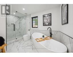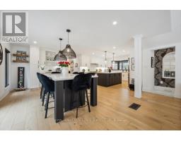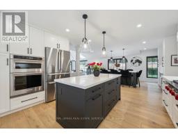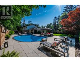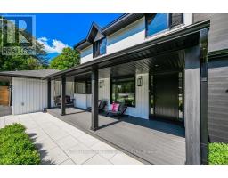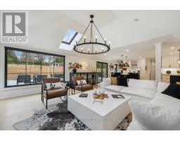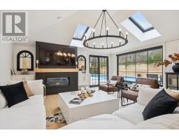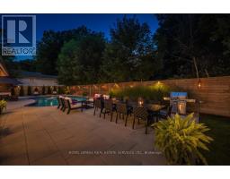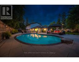 Absolutely gorgeous Modern farmhouse Masterpiece in the heart of Mineola! This charming fully renovated 5 bed 4 bath home nestled on a prestigious 90 x 200 mature lot on a quiet street offers everything you desire. A charming front porch provides for great curb appeal. Enter through the front door into a spacious foyer with custom built in closets & ship lap feature wall. Enjoy entertaining in the expansive sun-filled main level featuring a MAIN FLOOR PRIMARY bedroom with a spa inspired ensuite. Wide plank engineered naked white oak flooring flows throughout, a breathtaking chef's kitchen with custom cabinetry, Wolf 6 burner range, high end stainless steel appliances, quartz counter tops and backsplash, a large prep island and a second island dining table with barstool seating. The kitchen is open to a stunning family room with vaulted ceilings and vented skylights , gas fireplace with floor to ceiling porcelain surround and custom built-ins. Walkout from both kitchen and family room to unwind in a spectacular private, professionally landscaped resort style backyard oasis featuring a concrete salt water pool, large paver patio, fire pit area and lush perennial gardens. Take the solid oak, open riser staircase to the second floor where hardwood flooring continues through 4spacious bedrooms. Bedrooms 2 & 3 feature vaulted ceilings and feature walls. A gorgeous 4piece bath with a custom glass shower completes the second level. The fully finished lower level is designed for comfort and functionality offering a comfy rec room with ship lap feature wall and built-in electric fireplace, wide plank premium vinyl flooring, 3 piece bath, laundry room with custom cabinetry, & a sauna. This extraordinary home blends thoughtful design with top-tier finishes, all in one of Mississauga's most sought-after neighbourhoods. This is more than just a house, it's a meticulously maintained retreat, pride of ownership is obvious. Don't miss the opportunity to make it yours! (id:61594)