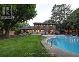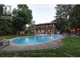 Rarely are homes in this neighbourhood available for sale. Completely updated top to bottom, & situated on a large 120'X150' ultra-private lot with pool, only steps to the park & Lake Ontario. With over 4,200 square feet of living space, this home is completely turn-key, featuring all the latest luxury finishes and amenities, and offering 4+1 bedrooms and 4 1/2 baths. On the main level - a formal dining room, open concept kitchen, family room with linear gas fireplace & breakfast area with expansive views to the rear yard & walk-outs to the large patio & pool area. There is also an office/den with a gas fireplace and views to the front yard + laundry room with side-door access, as well as access to the oversized 2-car garage. The 2nd floor has a spacious primary with 3-piece en-suite, & his & her closets. The 2nd & 3rd bedrooms share a 4-piece bathroom, while the 4th bedroom has a 4-piece en-suite. On the lower level, you will find a 5th bedroom & 3-piece bath, + a large recreation room & media room with large screen projection & sound system. Completely renovated in 2021 with a new storage sheds & pool house. Furnace/instant hot water/AC/roof/windows & doors/security cameras/sound system inside & out/pool heater - all 2023. Irrigation system/ cartridge & pool filter 2024. Fire alarms 2025. Located on one of Oakville's most sought-after streets, walking distance to Appleby College, one of Canadas finest schools, with easy access to all major highways, downtown Oakville, & Pearson International Airport. This is a must-see opportunity. (id:61594)