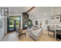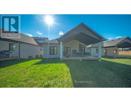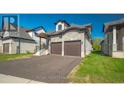 Welcome to 242 Mount Pleasant Street #17, an exceptional residence in Brantford's sought-after Lions Park Estates. Nestled on a quiet cul-de-sac just steps from Lions Park, Gilkinson Trail, and the Grand River, this home blends sophistication, comfort, and convenience in one breathtaking package. With 4+1 bedrooms, 3.5 bathrooms, and over 4,300 square feet, the property showcases more than $330,000 in upgrades. The main floor impresses with soaring ceilings, wide-plank hardwoods, and an open layout anchored by a dramatic dual-sided fireplace connecting the living room to the covered back patio. Evenings here can be spent fireside, cooled by a built-in fan, and surrounded by nature. The gourmet kitchen is a showpiece with an oversized waterfall island, custom cabinetry, and Fisher & Paykel appliances. Open sightlines to the dining and living areas make it ideal for gatherings, while designer lighting adds elegance throughout. The primary suite offers a true retreat with a tray ceiling, private patio walkout, spa-like ensuite with Riobel fixtures, freestanding soaker tub, glass shower, and double vanity, plus a custom walk-in dressing room. Upstairs are two additional bedrooms, a full bathroom, and a versatile loft perfect for an office, study, or lounge. The fully finished lower level extends the home with an impressive in-law suite including a kitchenette, bedroom, full bathroom, spacious living/dining area, and a stylish bar with rec room perfect for guests or multigenerational living. Unique features include a dog spa in the mudroom, a dedicated main-floor office (or bedroom), electric vehicle charging stations, and a covered outdoor living space for year-round entertaining. This is more than a home: it's a lifestyle. (id:61594)
