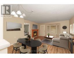 Welcome to Trinity Village Terrace, a 1,184 sq. ft. life lease townhome featuring 2 bedrooms and 3 bathrooms, all situated on a single, accessible level. The freshly painted interior, including the garage, provides a clean and modern feel throughout. The open-concept layout includes vinyl flooring in the living and dining area and large windows that create a bright, welcoming atmosphere. Enjoy added comfort with a gas fireplace in the living room and the convenience of a Stannah Canada stairlift for easy accessibility. Main level laundry enhances everyday practicality. The professionally finished basement, adding approximately 1,115 sq. ft., is ideal for family visits or a caregiver suite, featuring a full kitchen, living room, dining area, den, and a 3-piece bathroom. Ideally located just 2 minutes from Fairview Park and 5 minutes from Fairway Station, with pharmacies, grocery stores, and shopping nearby, this property perfectly combines comfort, functionality, and accessibility. (id:61594)