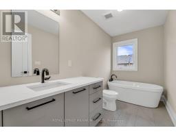 Never lived in Builder inventory home for sale! This completed 2 Storey Freehold Semi-Detached is beautifully finished with superior upgrades and on a full depth 110ft deep private lot (Note Lot Depth when comparing with other semis) in the popular Queen's Common community by Vogue Homes. Features include upgraded 4 1/2" wide modern hardwood & 12" x 24" tile flooring, 7 1/2" baseboards with 3 1/2" Casing, and upgraded interior doors & door hardware throughout finished areas. The main floor comes with double door front entrance to foyer with a double door coat closet, 9ft smooth ceilings, Impressive kitchen with endless stone countertop space & undermount sink, upgraded cabinetry with soft closing doors & drawers, backsplash, centre island with breakfast bar, and a builder's voucher for 3 brand new kitchen appliances, Family Size breakfast area with walkout to rear yard, large combined living & dining rooms, large family room with electric fireplace, powder room, and sunken main floor laundry with upper cabinets and voucher for brand new washer & Dryer. The oak staircase with iron pickets takes you to the 2nd floor where you will find 4 lovely bedrooms. The large Primary Bedroom has a walk-in closet and a 4pc ensuite complete with glass shower, freestanding tub, and an upgraded vanity with stone countertop. Bedrooms 2 & 3 are equipped with double closets, Bedroom 4 has a cathedral ceiling and double closets, and the 4pc main bathroom has an upgraded vanity with stone countertop. The unfinished basement comes equipped with a rough-in for a future 3pc bathroom, tankless hot water tank (rental), and HVAC system. (id:61594)