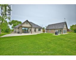 One of a kind, custom built home with views of the canal, 2800 sq ft of finished living space, with a fully finished basement with in-law capability with a 2nd kitchen and separate walk-up entrance to the double garage, plus a bonus detached double garage with 3rd kitchen, all on 120 ft frontage! Potential to sever side lot into another building lot. Watch the ships go by from your own window, driveway or porch! Located in close proximity to the future South Niagara Hospital. This stunning home offers oversized tile flooring and hardwood flooring throughout, an open concept Great Room with a gorgeous kitchen w/walk-in pantry, high end European s/s appliances, oversized island, granite counters & tile backsplash. Patio doors off the dining area lead to your large covered concrete patio! The primary suite offers a generous sized walk-in closet & 3pc ensuite w/large custom tile and glass shower. A guest bedroom with bonus office or sitting room, 4pc bath, and laundry/mudroom with inside entry from the attached double garage completes the main floor. The basement is fully finished with a separate walk-up to the garage, a full sized 2nd kitchen, a large combo living/dining area with a rough-in for a gas fireplace, a 3rd bedroom, and 3pc bath. The 2 level heated detached garage offers the ultimate man cave experience with a 3rd full sized kitchen with multiple patio doors, and bonus flex space on the 2nd level. Other features include 9ft ceilings on the main floor, tray ceilings, all trim is solid poplar, beautiful 7.5" baseboards, 8" crown moulding throughout main floor, rough in for future in floor heating in basement and attached garage, exposed aggregate driveway, concrete patio, covered front porch, tankless hot water heater, air filtration system, central vacuum, 200 amp service, custom window coverings, security system, 2nd driveway, all stone and solid brick exterior. (id:61594)