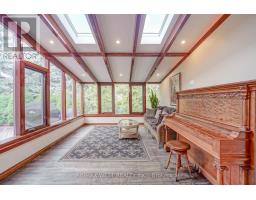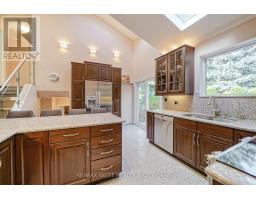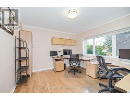 Welcome to this beautifully maintained 4-level sidesplit on a quiet court, located in the prestigious Edenbridge-Humber Valley neighbourhood. Set on a generous pie-shaped lot surrounded by mature trees, this spacious home offers the perfect blend of comfort, functionality, and privacy, all just steps from the Humber River, parks, walking trails, golf, top-rated schools, and transit. This home features three bright bedrooms upstairs, plus a versatile main-floor office. The office is ideal for remote work or professional use, and can effortlessly serve as a fourth bedroom if desired. Primary bedroom features a generous walk-in-closet and a 3-piece ensuite bathroom with heated floors. The other bedrooms have been thoughtfully renovated to remove bulkier built-in closets, creating a more open, spacious feel, with stylish wardrobes providing flexible storage. The multi-level layout offers excellent flow for families and entertaining, with both the kitchen and family room framed by large windows overlooking the deck and private, tree-lined backyard. Soaring ceilings and skylights bathe these spaces in natural light. The lush, wooded backdrop, complete with pear and apple trees, creates a peaceful, Muskoka-like setting, offering a cottage-country feel right in the city. The home is also equipped with a state-of-the-art reverse osmosis system, ensuring pure, clean water at every tap throughout the home. A lower-level recreation room adds even more versatile space, perfect for a gym, media room, or play area. (id:61594)