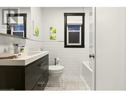 Updated 1 3/4-storey home offering more space than it appears, ideally located within walking distance to McMaster University, Westdale Village, schools, the Rail Trail, recreation centres, and GO access. The home has been updated both inside and out and features strong curb appeal with landscaped front and fenced backyard. Bright interior with natural light, fresh décor, and original character details including cove ceilings and gumwood trim. The main floor includes a professionally designed kitchen with built-in appliances, induction cooktop, double wall ovens, ample cabinetry, counter space, and a breakfast area with walkout to the backyard and cement patio. A main-floor bedroom (currently used as a dining room) and updated 4-piece bath offer flexibility for one-floor living if desired! The second level features two bedrooms, including a large primary with walk-in closet and electric fireplace, plus an updated 3-piece bath. Access to this level is available from both inside and a separate exterior entrance. The finished lower level includes a bedroom, updated 3-piece bath, laundry, storage, and cabinetry with sink and fridge, offering potential for a kitchenette or in-law suite. Attached garage with inside entry. (id:61594)