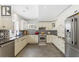 Welcome to 17 Hoodless Court, an executive 2-storey home nestled on a quiet cul-de-sac in one of Brantford’s most desirable family communities. With nearly 5,000 sq ft of finished living space, this beautifully appointed property offers comfort, versatility, and a touch of luxury at every turn. The main floor features a bright open-concept layout with soaring ceilings, hardwood flooring, and oversized windows that flood the home with natural light. The chef’s kitchen boasts rich maple cabinetry, granite counters, marble backsplash, stainless-steel appliances, and a spacious island that seamlessly connects to the family room with a gas fireplace, ideal for entertaining. A formal dining room, home office, and main-floor bedroom with ensuite privilege complete this level. Upstairs, you’ll find four large bedrooms and three full baths, including a primary suite with a sitting area, walk-in closet, and a spa-inspired ensuite. The fully finished lower level offers exceptional flexibility with a complete in-law suite featuring a second full kitchen with quartz counters, large windows, and a private walk-out to the backyard. Step outside to your personal retreat, a stunning saltwater pool surrounded by landscaped gardens and backing onto lush green space with no rear neighbours. Close to parks, trails, schools, and easy highway access, this home truly has it all; luxury, lifestyle, and location. (id:61594)