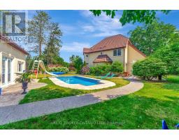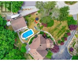 Welcome to this beautifully updated estate home on over half an acre in the quiet community of Lynedoch, just minutes from Delhi. Set on a private cul-de-sac and perched on a hill, this 3,265 sq.ft. residence offers exceptional living space along with a detached 740 sq.ft. guest house and a stunning in-ground pool (2022). Built in 1992, the home has been extensively upgraded and meticulously maintained. The grand foyer with a circular staircase sets an elegant tone. The formal living room features hardwood flooring, a custom colonial mantel, and gas fireplace. A chefs kitchen includes JennAir appliances, granite counters, and a bright breakfast area with patio walk-out. The spacious family room boasts cathedral ceilings and skylights, while a main floor office offers high-speed internet access, perfect for working from home. A powder room and main floor laundry complete the level. Upstairs, the octagonal master suite is a private retreat with high ceilings, a gas fireplace, and a renovated five-piece ensuite with a double vanity, large glass shower, and whirlpool tub. A private guest wing above the garage includes two additional bedrooms. The detached guest house is fully equipped with its own furnace, A/C, and a three-piece bathideal as an in-law suite, Airbnb, or home office. The gated property features mature gardens, patios, a pergola, and a large driveway with extra parking beside the oversized double garage. Major updates include a steel roof (2010), stucco exterior (2017), windows (2015, 2017), hardwood floors (2022), epoxy garage flooring (2013), and updated fireplace and mantel (2014). Additional features: Miele washer/dryer (2013), fridge (2017), dishwasher (2017), microwave/convection oven (2014), water softener (2013), UV light and filter (2018), cistern (2013), well pump (2019), irrigation (2017, 2019), central vac (2021), and water heater (2019). A truly move-in-ready home with luxurious features in a peaceful setting. (id:61594)