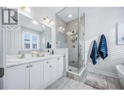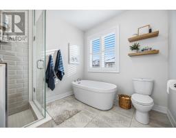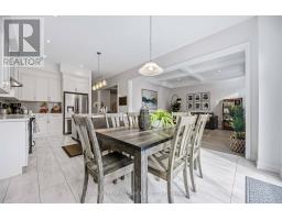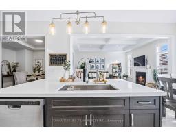 Stunning Heathwood-built 'Aspendale' model offering 3,435 sqft of upgraded living space including the builder finished basement. Rich oak hardwood flooring flows throughout the main and second floors, including the staircase accented with wrought iron spindles, while 10-ft ceilings, california shutters and pot lighting enhance the elegant, open feel of the home. The formal dining room with elegant coffered ceiling is ready for Holiday entertaining. Impressive great room showcases a stunning waffle ceiling and a gas fireplace with custom mantle for cozy Hallmark Movie nights. Gourmet kitchen boasts quartz counters, a large centre island with breakfast bar and pendant lighting, stainless steel appliances including upgraded chimney hood, custom subway tile backsplash, large walk-in pantry and ample cabinetry. The bright breakfast area features sliding glass doors leading to a deck and a fully fenced backyard, complete with a large garden shed. Upper level offers 4 generous bedrooms with great closet space, all with ensuite access. The primary bedroom includes a 5-piece spa-inspired ensuite with soaker tub and glass shower. Convenient 2nd-floor laundry with cabinetry plus an open-concept den perfect for home office or study. The fully finished basement features 9-ft ceilings, pot lights, great windows, a 4-piece bathroom, and abundant storage, offering plenty of additional living space. Ideally located just mins to Heber Down Conservation Area & the new un-named public school schedule to open Sept 2026. Minutes to Hwy 412, 407 & 401, this home offers the perfect blend of luxury, comfort, and convenience! (id:61594)