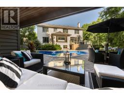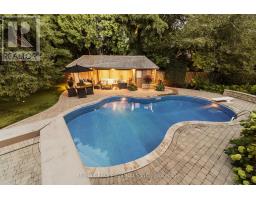 Custom Luxury Build on Prime Islington Heights Street with Rare Pie-Shaped Lot. Nestled On One of Islington Heights' Most Desirable Streets, This Exceptional Custom-Built Residence Sits on a Rare Pie-Shaped Lot and Has Been Extensively Renovated and Professionally Landscaped with Premium Finishes Throughout. Offering 4+1 Bedrooms and 5 Bathrooms, the Home is Thoughtfully Designed For Both Luxurious Living and Effortless Entertaining. The Main Floor Features a Chef-Inspired Kitchen With High-End Appliances and Custom Cabinetry, Seamlessly Opening to a Spacious Family Room With Walkout To The Deck. Enjoy Tranquil Views of The Private Backyard Oasis, Complete With a Pool, Cabana, and Beautifully Landscaped Grounds. Elegant Formal Living and Dining Rooms Provide Sophisticated Spaces for Entertaining and Hosting Gatherings. A Dedicated Main Floor Office Provides The Perfect Work-From-Home Space, While A Convenient Garage Entrance Leads Into A Functional And Spacious MudroomThe second level Showcases a Luxurious Primary Retreat With a Spa-Inspired, State-of-the-Art Ensuite, Fabulous Custom Built-ins and Electric Fireplace. Generously Sized Secondary Bedrooms, 3 Baths and Second Floor Laundry Complete This Level.The Fully Finished Walk-Out Lower Level With Impressive 8' Ceilings Offers Exceptional Additional Living Space, Including a Large Recreation Room, Games Area, Gym, Extra Bedroom, and Bathroom-Ideal for Guests, Extended Family, or Entertaining. A Rare Opportunity to Own a Turnkey Luxury Home in Prestigious Islington Heights, Near Islington And St. George's Golf Clubs, Great Schools, All Amenities. Home And Gardens Décor. It's Truly Perfect. (id:61594)