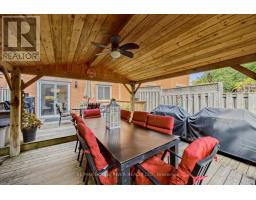 Give yourself an early Christmas gift! This over improved lovely 3 bedroom Freehold Townhome in Whitby is the one. No Maintenance fee. Spacious Living and Dining areas with Pot Lights and beautiful crown moulding. Walk out from the Dining room to an Entertainer's backyard with a 2 -tier deck and gazebo. Good size Kitchen. The Hardwood staircase with wainscotting leads to the second floor featuring a Primary bedroom with upgraded 3pc. ensuite and 2 good size secondary bedrooms and upgraded main bathroom. The Basement is finished as a cozy Rec. room with an electric fireplace, built-in shelving and surround sound. Close to all amenities. Close to highways and public transit. This home is truly special. No work to be done, just move in and enjoy (id:61594)