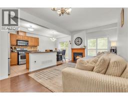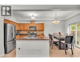 Experience smart home living in Stoney Creek with this stylish, low-maintenance, move-in ready 3+1 bedroom, 2.5 bath condo townhouse offering approximately 2,000 sq. ft. of total living space in a quiet, family-friendly community.Enjoy peace of mind with a low $330/month condo fee covering the entire home envelope including roof, windows, doors, grass cutting, and snow removal eliminating costly exterior maintenance.This bright, open-concept home features upgraded flooring, fresh modern paint tones, California shutters, updated light fixtures, and a cozy gas fireplace in the living area. The modern kitchen includes real wood cabinetry, stainless steel appliances, stylish backsplash, and a functional island opening to the living and dining spaces perfect for entertaining.Upstairs offers a spacious primary bedroom with updated ensuite featuring a new vanity and glass shower, plus a unique 9' x 8' den ideal for an office or storage. The finished basement provides additional living space with pot lights, a stone accent wall, and electric fireplace.Smart home technology allows control of lights, heating, and cooling by voice, phone, or schedule even adjust the temperature from bed and have lights turn on automatically at sunset.Located across from Circle K and Tim Hortons, just a 5-minute walk to Valerie Park (next to Sherwood Soccer Fields), and a 6-minute drive to the QEW. Unit #30 offers exceptional backyard privacy with no neighboring homes within 100 feet.A perfect blend of style, comfort, and convenience this home offers incredible value and is truly move-in ready! (id:61594)