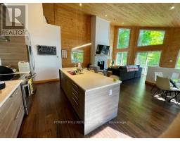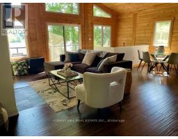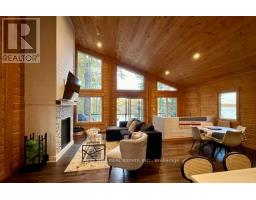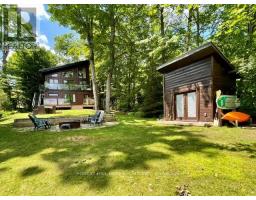 Offering 3+1 bedrooms & 2 bathrooms fully furnished lake Muskoka dream home, the interior is highlighted by a bright, open-concept layout with impressive 22-foot ceilings & expansive windows that frame stunning lake Muskoka views & fill the space with natural light. The kitchen is thoughtfully designed for both everyday living & entertaining, featuring granite surfaces, stainless steel appliances, & a large island with plenty of seating. A wood-burning fireplace anchors the main living space, creating a warm & inviting atmosphere throughout the seasons. Upstairs, a private composite balcony with glass railings provides a quiet place to unwind & take in the surrounding landscape. The primary bedroom includes a walkout to the rear deck & a rough-in for a future ensuite. Recent updates completed in 2024 add even more value, including a newly finished bathroom on the ground level & a newly installed steel staircase, offering both function & a modern aesthetic. The outdoor setting has been extensively enhanced with professionally designed landscaping by a top-tier firm, creating a polished yet natural environment. Multiple stone patio areas & a fire pit provide ideal spaces for entertaining or relaxing outdoors, all surrounded by mature trees for added privacy. The waterfront is exceptionally user-friendly, with a shallow sandy entry ideal for families, along with a Dock-in-a-Box system for convenient access to Lake Muskoka & its vast boating network. A matching bunkie at the water's edge offers additional space for guests or a quiet escape. Located just minutes from Muskoka Bay Resort, as well as the shops, dining, & waterfront attractions of Gravenhurst, this property offers both seclusion & convenience-an ideal setting to enjoy everything Muskoka has to offer. (id:61594)