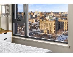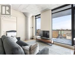 This southeast-facing corner suite in the heart of Centretown offers rare light, views, and architectural character. Floor-to-ceiling windows wrap the space in natural sunlight, while exposed concrete columns add a refined industrial edge. From the living area, enjoy open sightlines toward the Museum of Nature, with the Rideau Canal shimmering beyond. The open-concept layout is both calm and functional. The kitchen features sleek white cabinetry, quartz countertops, stainless steel appliances, subway tile backsplash, and a rare 4-burner gas cooktop anchored by a generous island - ideal for entertaining or everyday living. The east facing bedroom is bathed in afternoon light-perfect for a home office, creative studio, or morning yoga space. The bathroom is finished with floor-to-ceiling Calacatta-style porcelain tile and clean, modern lines. In-unit laundry and underground parking provide everyday convenience. Residents enjoy concierge/security, gym, outdoor pool, and party room. Steps to cafés, restaurants, and the Canal, with quick access to the 417 - this is corner-unit city living designed for professionals who value light, location, and lifestyle. (id:61594)