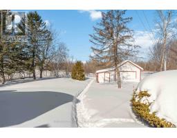 Welcome to 1705 Old Montreal Road! This solid brick bungalow is perfectly situated just minutes from Orléans and nestled on a picturesque 2.5-acre lot, offering the ideal blend of convenience and country living. Step inside to a bright and inviting main level featuring a spacious eat-in kitchen and a sun-filled living room with oversized windows that capture beautiful southern exposure. A charming gas fireplace with a brick façade creates a warm and welcoming focal point. Three generously sized bedrooms and a full main bathroom complete the main floor. The fully finished basement expands your living space with a 4th bedroom and a spacious recreation room featuring a wet bar, pool table, and a cozy wood-burning fireplace-perfect for entertaining or relaxing evenings at home. An additional bathroom adds extra convenience. Outside, the property is beautifully landscaped front and back, with a large deck overlooking the expansive yard. Bonus outbuildings provide incredible flexibility, while the oversized single-car attached garage and impressive commercial-style double bay garage make this property ideal for car enthusiasts, hobbyists, or home-based businesses. A rare opportunity to enjoy space,(garage is 40 x 40ft with 16 ft ceilings) functionality, and location all in one exceptional property. (id:61594)