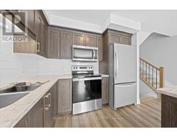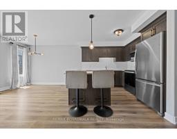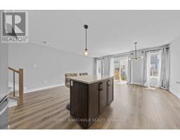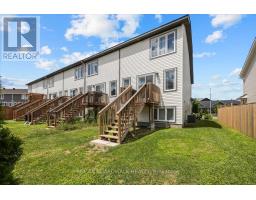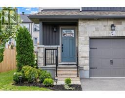 Beautiful 3 bedroom end unit townhome in the heart of Bellamy Farms, Smiths Falls, covered front porch w/aluminum railings, stone skirt exterior w/two tone siding, front door w/upper window, front foyer w/oversized tile, high ceilings, clear cut baseboards & two panel interior doors, centre island w/granite countertops, breakfast bar, shaker style cabinets, upper moldings & horizontal backsplash, open living & dining areas w/wide plank flooring, southern rear exposure w/multiple windows & patio door to elevated BBQ deck, staircase w/box post railing & metal spindles to 2nd level landing, 2 x front bedrooms w/double closets, 4 pc main bathroom w/granite vanity top, oval sink & moulded tub, primary bedroom feels like a private retreat w/twin French doors, multiple windows, 3 sided walk-in closet w/custom drawers, luxurious ensuite w/double wide glass door shower, oversized tile & granite topped vanity, separate 2nd level laundry room, open lower staircase to multifunction Rec room, w/electric fireplace & oversized windows, deep storage room & seperate utility area w/owned HRV, furnace, hot water tank & central air, inside access to insulated garage, double length driveway, 2 sided fenced backyard w/landscaping, easy access toCataraqui Trail, shopping, eateries & the Rideau Canal waterways, 24 hour irrevocable on all offers. (id:61594)