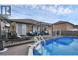 FULLY FINISHED BUNGALOW WITH ABOVE GROUND POOL AND DOUBLE GARAGE - Welcome to this meticulously maintained, fully finished bungalow. Boasting over 2,500 square feet of thoughtfully designed living space, this residence is an entertainer's dream. Step inside and be greeted by the light-filled, open-concept family and dining area, where updated lighting and durable luxury vinyl plank flooring create a warm and welcoming atmosphere. The spacious, eat-in kitchen is a chef's delight, featuring an abundance of sleek cabinetry, solid surface countertops, and high-end stainless-steel appliances. From the kitchen, walk out to your private backyard oasis. A multi-level entertaining area awaits, complete with a concrete patio and a beautiful composite deck with elegant glass railings. Host summer barbecues, relax on the loungers, or cool off in the heated above-ground pool. For those seeking a shady retreat, the gazebo offers a perfect escape, all within steps of the convenient pool house. The main floor provides a peaceful retreat with a generous primary bedroom, a walk-in closet, and a luxurious 4-piece ensuite with a deep soaker tub. A second bedroom, a full 4-piece bath, and a main-floor laundry room add to the home's functional and effortless layout. The fully finished lower level offers an incredible extension of the living space. Discover a large recreation room perfect for family movie nights, a versatile flex space ideal for a gym or home office, and two additional bedrooms with a shared 3-piece bathroom (one with ensuite privilege), offering privacy and comfort for guests or family. Enjoy peace of mind with recent updates, including new windows and doors, a high-efficiency furnace, a new dishwasher, and an updated pool heater, pump, and automatic vacuum. Located in a desirable neighbourhood with access to schools, shopping, and the scenic Eramosa Karst Conservation Area, this home also offers quick highway access via the Red Hill Valley Parkway and the Linc. (id:61594)