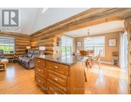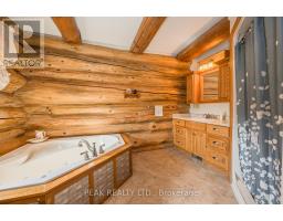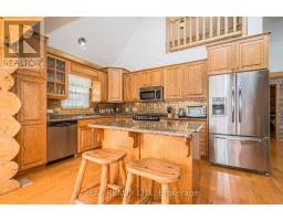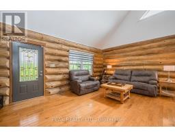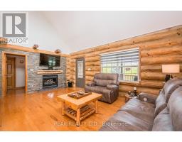 Stunning custom-designed and built white pine log home in the heart of Southampton. This one of a kind residence combines natural charm with modern comfort, centrally located close to schools, shopping, golf, and the beach and just minutes from Lake Huron's world-famous sunsets. The property also features an impressive 930 sq. ft. detached garage, perfect for a workshop, RV (with RV outlet), classic car storage, or a home-based business. Step inside this well maintained, carpet free home and enjoy the warmth of a two-sided gas fireplace shared between the chalet-style living room with soaring ceilings and the main-floor primary bedroom, which features a walk-in closet, ensuite privilege with jacuzzi tub, and laundry area. The kitchen offers ample cabinetry, an island with breakfast bar, and a seamless flow to the dining area with walkout to a covered porch and natural gas BBQ hookup. The upper loft, which could be a 3rd bedroom provides spectacular sunset views and star gazing, another bedroom and full bathroom complete the upper level and offer privacy for family or guests. The partially finished basement features drywall, a cold room, and a rough-in for a bathroom, ready for your finishing touches. Neutral interior paint (2021), exterior wood painted (2022), foundation painted (2024). In addition to the amazing detached garage, enjoy a large, partly fenced backyard with raised garden beds, landscaping with pond, sandy area, firepit, garden shed, and ample parking. Whether you enjoy hiking, biking, swimming, boating, fishing, golfing, skiing, or gardening, this home places you at the centre of it all. A rare opportunity to own a truly unique property in one of Ontario's most desirable communities. (id:61594)