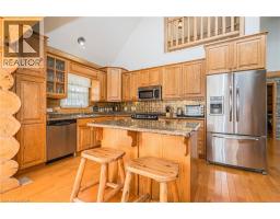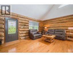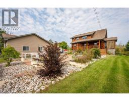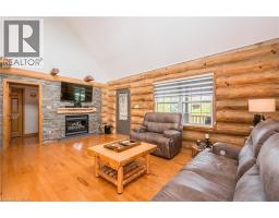Stunning custom-designed and built white pine log home in the heart of Southampton. This four-season retreat combines natural charm with modern comfort, centrally located close to schools, shopping, golf, and the beach — just minutes from Lake Huron’s world-famous sunsets. The property includes an impressive 930 sq. ft. detached garage, perfect for a workshop, RV (with RV outlet), classic car storage, or a home-based business. Inside, enjoy the warmth of a two-sided gas fireplace shared between the chalet-style living room with soaring ceilings and the main-floor primary bedroom, which features a walk-in closet, ensuite privilege with jacuzzi tub, and laundry area. The kitchen offers ample cabinetry, an island with breakfast bar, and a seamless flow to the dining area with walkout to a covered porch and natural gas BBQ hookup. The upper loft provides spectacular sunset views and star gazing and includes two sleeping areas (one currently used as a family room) and a full bathroom, offering privacy for family or guests. The partially finished basement features drywall, a cold room, and a rough-in for a bathroom, ready for your finishing touches. Outside, enjoy a large, partly fenced backyard with raised garden beds, landscaping with pond, sandy area, firepit, garden shed, and ample parking. Whether you enjoy hiking, biking, swimming, boating, fishing, golfing, skiing, or gardening, this home places you at the center of it all. A rare opportunity to own a truly unique property in one of Ontario’s most desirable communities. (id:61594)