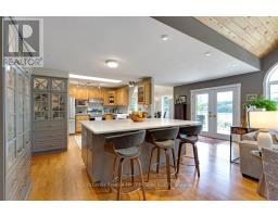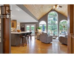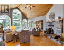 Welcome to 1718 Blue Heron Ridge, a spacious year-round home on the shores of sought-after Kennebec Lake. Set at the end of a quiet, privately maintained road, this custom-built raised bungalow offers 4000 square feet of finished living space, thoughtfully designed for family or multi-generational use. Enjoy deep, clean water off the end of the dock, ideal for swimming, or relax in the gazebo perched along the ridgeline, surrounded by landscaped acre of gorgeous perennial gardens and, extensive decking. Inside, the open-concept main floor features a vaulted pine ceiling, wide-plank oak flooring, and a large, upgraded kitchen with large island, granite counters, and a farmhouse sink. Patio doors lead from the kitchen to a large and recently re-built deck, from which you can walk down to the back yard and the water below. The main level also includes a living room with wood-burning fireplace, a den with custom cabinetry, a home office, and two bedrooms, including a generous primary suite with luxurious ensuite and walk-in closet. An indoor hot tub looks out over the water and the second bathroom features a large cedar sauna. Downstairs, the walkout lower level offers two additional bedrooms, a bathroom, a family room, games area, wet bar, multiple storage, utility, and hobby spaces, and a cold room. The detached garage has space for 2 cars as well as a large 30'x9' woodworking shop. Major updates since 2020 include kitchen and bathroom renovations, new exterior doors and patio doors, rebuilt front, rear, and side decks, and a new AC unit. The private road is cleared and maintained by the Blue Heron Ridge Road Association (fee is $150/year). This beautiful waterfront home is only 1 hour from Kingston, 2 hours from Ottawa, and 3 hours from downtown Toronto. Come experience lakefront living at its finest! (id:61594)