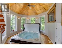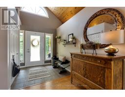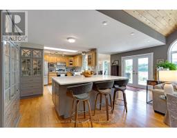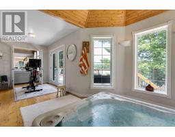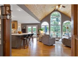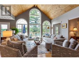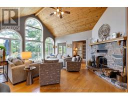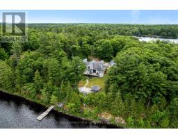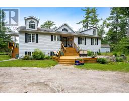 Step onto the deck with your morning coffee, listen to the loons, and watch the mist lift off Kennebec Lake. This is what you bought a cottage country home for. Tucked at the end of a quiet, privately maintained road, 1718 Blue Heron Ridge is a custom raised bungalow with 4,000 square feet of finished living space, built for the way families actually live, with room to spread out, host the grandkids, or set up multi-generational living without anyone tripping over each other. The main floor opens up under a vaulted pine ceiling, anchored by wide-plank oak floors and a kitchen that earns its keep: oversized island, granite counters, farmhouse sink, and patio doors that spill onto a freshly rebuilt deck. A wood-burning fireplace warms the living room. A den with custom cabinetry and a dedicated home office mean working from the lake is a real option, not a fantasy. The primary suite is generous, with a luxurious ensuite and walk-in closet. An indoor hot tub looks out over the water, and the second bathroom hides a full cedar sauna. Downstairs, the walkout lower level adds two more bedrooms, a full bath, family room, games area, wet bar, cold room, and all the storage and hobby space you've been wishing for. The detached double garage includes a 30 by 9 woodworking shop for the maker in the family, plus a dedicated wood storage structure to keep the season's supply dry and close to hand. Outside, a landscaped acre of perennial gardens, extensive decking, and a ridgeline gazebo make the yard feel like a private resort. Off the end of the dock: deep, clean swimming water. Major updates since 2020 include the kitchen, bathrooms, exterior and patio doors, all three decks, a new AC, and seven new windows in 2026. Road association fee is just $400 per year. One hour to Kingston, two to Ottawa, three to downtown Toronto. Book your private tour before someone else calls it home. (id:61594)