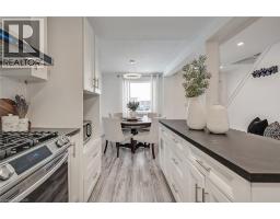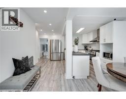 Perfect for first-time buyers, this move-in-ready two bedroom, one bath home is thoughtfully updated on a fully fenced lot. The welcoming front entrance features pot lights and wood-look flooring that continues throughout much of the home. The bright eat-in kitchen is beautifully updated with modern cabinetry, countertops, backsplash, island, updated lighting, and stainless steel appliances including a gas stove. The living room offers patio doors that walk out to a private backyard with a wood deck, shed, BBQ, and patio umbrella, ideal for entertaining or relaxing outdoors. The primary bedroom includes wood-look flooring, pot lights, and an organized closet system, while the second bedroom also features matching flooring and pot lights. The four piece bathroom offers a soaker tub, pedestal sink, vanity mirror, and pot light. The lower level provides laundry with a new dryer, built-in shelving, ample storage, and a rough-in for a future bathroom. Additional updates include exterior siding and eaves troughs, updated flooring, baseboards, trim, interior doors, pot lights, thermostat, exterior security system, updated electrical plus a 100 AMP panel, and has no rental equipment. Close to amazing shops, restaurants, amenities and all that this fantastic neighborhood has to offer. (id:61594)