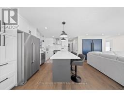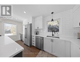 Move-in ready and beautifully renovated, this 4 bedroom, 2 bathroom home sits on an impressive 87' x 262' lot with no rear neighbours, right in the heart of Clarence Creek! The fully renovated main floor is sure to impress with its inviting open concept layout and tasteful finishes throughout, highlighted by beautiful 6" oak hardwood floors. Be prepared to be wowed by the stunning renovated kitchen (2024) featuring crisp white cabinetry, quartz countertops, striking black hardware, classic white subway tile backsplash and stainless steel appliances, including a gas range. A stylish bar area with mini refrigerator and a massive centre island with seating anchor the space, all overlooking the sun-filled living room - Perfect for everyday living and entertaining! The bedroom area offers a generous primary bedroom, a spacious secondary bedroom and a beautifully designed bathroom (2024) complete with bold black finishes, hexagon tile and a sleek glass shower. A convenient side entrance leads directly to the basement stairs, making this an ideal setup for a potential in-law suite. The basement boasts high ceilings and oversized windows throughout, creating a bright and welcoming lower level that includes a versatile family room, two additional bedrooms, a full bathroom and a laundry room with plenty of storage. Outside, enjoy the paved driveway leading to the detached garage, offering ample space for a vehicle and additional storage, and extending to the fully fenced backyard-perfect for kids and pets. Great convenient location, minutes to Rockland with all possible amenities and easy commute to Ottawa! Many major updates done in the recent years - windows & exterior doors 2025, gas stove 2024, heat pumps 2024, roof 2018, paint 2024-25 & more. Simply move in and enjoy! (id:61594)