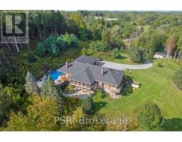 Welcome to 17397 Humber Station Road, A Private Retreat Surrounded by Nature Experience the rare opportunity to own a fully updated bungalow set on a breathtaking 24 acre estate, where privacy, serenity, and natural beauty come together in perfect harmony. Thoughtfully designed for both everyday living and exceptional entertaining, this elegant home offers a spacious open-concept layout, a luxurious main floor primary suite, and a walkout to an expansive screened porch, perfect for peaceful evenings immersed in nature. At the heart of the home, the oversized chef's kitchen is a culinary showpiece, featuring premium appliances and ample space to prepare and enjoy meals with family and friends. Rich hardwood flooring flows throughout, complemented by vaulted ceilings with exposed wood beams, multiple fireplaces, and timeless architectural details that create a warm and inviting atmosphere. The fully finished walkout basement opens to a stunning backyard oasis, complete with a spectacular in-ground pool, cascading waterfall, and a large hot tub... your own private paradise. With four spacious bedrooms and countless upgrades throughout, this exceptional property offers a lifestyle of luxury and tranquility. This is more than a home, it's an escape. (id:61594)