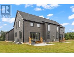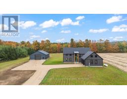 Welcome to this stunning brand-new custom home located on 2.6 acres between Hanover and Durham. Offering over 3,000 square feet of thoughtfully designed living space, this modern 4-bedroom, 4-bath home is truly turn-key with every detail carefully considered.Step inside and be greeted by a bright, open-concept layout featuring a soaring cathedral ceiling and a striking fireplace in the living room. The main floor boasts luxury vinyl flooring and recessed lighting throughout. The contemporary kitchen includes stainless steel appliances, a large centre island, propane stove with pot filler, and ample counter space-perfect for family gatherings and entertaining. The adjoining dining area walks out to the backyard, ideal for enjoying the scenic countryside views.A large mudroom with built-in storage connects to the double car garage, and the main floor laundry adds convenience to everyday living. The primary suite offers his-and-her closets, a walkout to the backyard, and a luxurious ensuite with a glass shower and double-sink vanity.Upstairs, sleek glass railings lead to a spacious loft-an ideal office or family lounge. Three additional bedrooms complete the upper level, including one with a private 3-piece ensuite and another full 4-piece bath.The lower level offers a partially finished space with a 3-piece rough-in and cold room, ready for your personal touch. Outside, enjoy the expansive lot and the added bonus of a 40 x 60 detached shop with a 14 x 14 overhead door-perfect for hobbyists, storage, or a home business.A rare opportunity to own a new, modern country home that blends luxury, function, and space-just minutes to both Hanover and Durham. (id:61594)