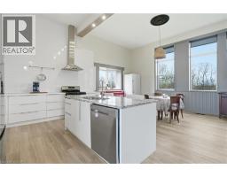 Set on a peaceful one-acre country lot, this reimagined former schoolhouse offers a rare mix of character, space, and meaningful updates throughout. The main home features 3 bedrooms plus an additional 3 in the upper level above the garage, along with 2 full bathrooms including a beautifully finished lower bath (2025) with in-floor heat. Inside, you’ll find an open, airy layout with tall ceilings, oversized windows, and a fully updated kitchen highlighted by a new gas stove (2026) and upgraded cabinetry. Major improvements include a steel flat roof (2016), furnace (2016), A/C (2024), windows in the main house (approx. 2016) and above the garage (2025), plus a WETT-certified wood stove (2024) with new fire brick (2026) that helps offset heating costs, with propane averaging approx. $1,500 per fill. The heated 28' x 28' garage has its own furnace and offers exceptional flexibility with a rec room and separate entrance to the upper level. Additional features include a split unit in the addition, washer and dryer (2017), hot water tank (2015), new hardscaping and fencing (2024), and two 20' sea cans for added storage. The property is serviced by a 2,000-gallon cistern (cleaned and inspected in 2024) with rainwater collection and deliveries approximately every 4 months, with 2025 water costs around $500. A truly unique rural property offering space, function, and character just minutes from Fort Erie and QEW access. (id:61594)