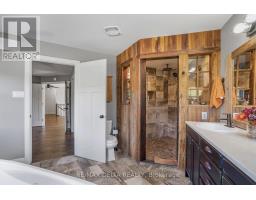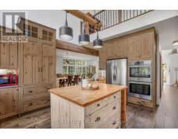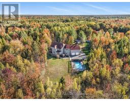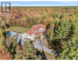 Tucked away on nearly 6 acres of wooded privacy, 1749 Albert Leroux Road is a stunning custom-built estate offering over 6,400 sq.ft. of beautifully finished living space. A long, tree-lined driveway leads to this impressive two-storey home, where timeless charm meets upscale finishes. Built in 2017, it features a welcoming front porch with timber accents and warm wood details carried throughout the interior. The gourmet kitchen is a showpiece with custom cabinetry, a butcher-block island, Bosch appliances, and exposed beams that set the tone for the homes inviting style. Oversized windows in the dining and living areas frame forest views and fill the home with natural light. The primary suite serves as a private haven with a spa-inspired ensuite featuring a freestanding tub, double vanity, and a one-of-a-kind wood-accented shower. The fully finished lower level adds even more living space with a family room, games area, office, bathroom, and the comfort of radiant in-floor heating. Outdoors, enjoy a resort-like setting with an inground pool, gazebo, and firepit surrounded by mature trees. A heated attached double garage provides year-round convenience and additional comfort. Just minutes from Casselman and Hwy 417, this property is a rare opportunity to enjoy modern sophistication in a serene setting, an exceptional expression of rustic luxury. (id:61594)