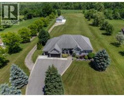 Exquisite Custom Built Bungalow on a 2.5 Acre Lot with Detached Garage-Workshop! This serene property has exceptional features. Spectacular curb appeal with stone plus stucco exterior, premium landscaping, paved driveway and custom concrete. Enter with your vehicle through the triple car garage or covered double man door entry. High vaulted ceilings in the dining and living room with large windows. Nice kitchen with an island open to the family room with a fireplace and French doors to a beautiful deck. 4 good size bedrooms with a 5 pc main bathroom. The Primary - Master bedroom offers a walk-in closet and 5 pc Ensuite bathroom. California shutters throughout the main floor. Main floor Laundry room with garage access. Huge unfinished walk-out basement with rough-in for another bathroom and kitchen. This premier lot offers scenic estate views. 25 ft x 50 ft Detached Garage Workshop provides additional space. Well located property nestled between multiple executive country estates with easy access to Cambridge, HWY 401 and many desirable amenities. Don't miss out on this one of a kind property. Book your private viewing today! (id:61594)
