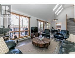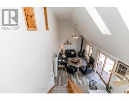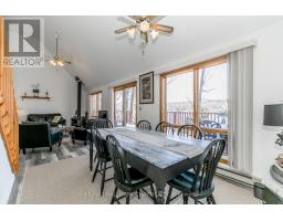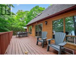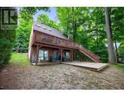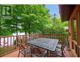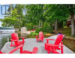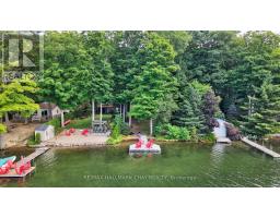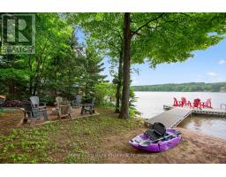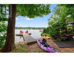 Nestled along 50 feet of pristine shoreline with coveted western exposure, this enchanting 3-bedroom, 3-bathroom chalet-style cottage offers the perfect blend of charm, comfort, and functionality. Set on the tranquil waters of Farlain Lake, the property showcases breathtaking sunsets and serene lake views year-round. The main level features a bright, open-concept living and dining area with soaring cathedral ceilings and skylights that flood the space with natural light. A spacious kitchen, cozy bedroom, convenient laundry room, and a well-appointed 3-piece bathroom complete this level. Upstairs, two generously sized bedrooms provide ample space for family or guests and share a stylish 4-piece bathroom. The recently renovated lower level adds exceptional versatility, featuring a new 3-piece bath, a flexible space easily converted into a fourth bedroom, and a walkout leading to a newer deck-perfect for seamless indoor-outdoor living. Enjoy year-round comfort with a charming wood stove for cozy winter evenings, and in the warmer months, relax by the water from your private dock. Whether you're entertaining or unwinding in peaceful lakeside surroundings, this property offers an inviting retreat for every season. (id:61594)