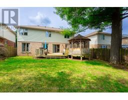 A welcoming family home in a great community where everyone shows true pride of ownership. As you arrive, notice the quiet streets and the convenience of having three schools just five minutes away. The covered front porch is the perfect spot to relax and chat with friendly neighbours. Step inside the foyer, double French doors open to a bright living/dining room with a large multi pane window that fills the space with natural light. A perfect spot to curl up with a good book. The dining area easily fits a full table for large gatherings. The spacious eat in kitchen features a classic working triangle, custom oak cabinetry, ample prep and pantry space, and a window overlooking the large, fully fenced yard. Imagine enjoying a morning coffee in the screened in gazebo while the kids play in the large private yard. Or entertain friends on the generous deck beneath tall mature trees - back yards like this are rare. Settle into the warm family room with a cozy gas fireplace, a true bonus in today's layouts. Upstairs are three carpet free, oversized bedrooms, including a primary suite with a retreat style ensuite featuring a separate shower and jetted tub. The fully finished basement offers space for board games, enjoying a workout, or cozy movie nights. And what a great neighbourhood! Steps to schools, parks, shopping, and Shade's Mills Conservation Area, this home has been lovingly cared for and truly offers something for everyone. You owe it to yourself to see this one. (id:61594)